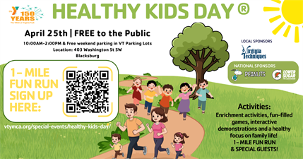 This year on April 25th, the YMCA at Virginia Tech will celebrate the 34th anniversary of Healthy Kids Day®, a national initiative to improve the health and well-being of kids.